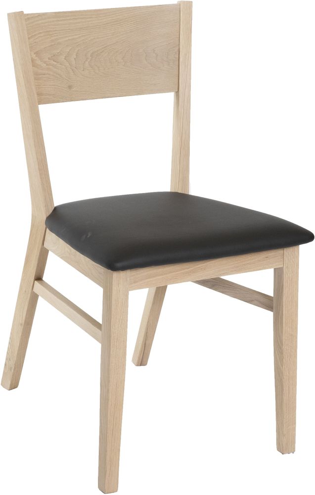 Matstol i massiv vitoljad ek, sits av svart PU.