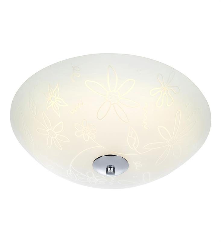 Fleur härliga taklampa med en stilren design. Tillverkad i frostat glas med detaljer i metall. Fast installation och upphäng med krok eller skruvar. Fast dimbar 12W LED. SMD sockel. Säkerhetsklass 1. Lampan är lättplacerad och passar perfekt in på flera olika platser i hushållet.