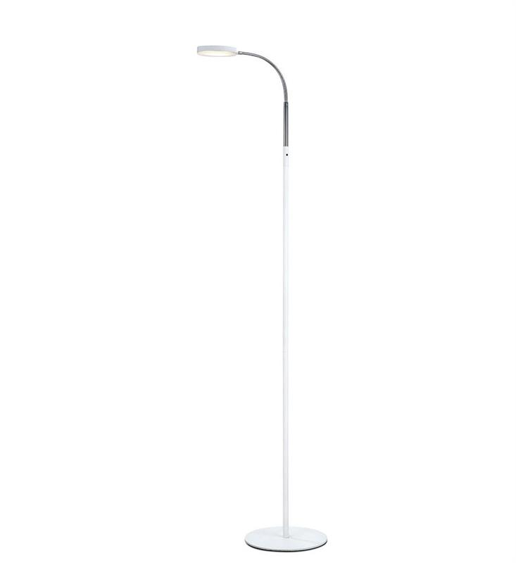 Flex golvlampa med en stilren design. Tillverkad i metall med ställbart lamphuvud i plast. Lampan är lättplacerad och passar perfekt in på flera olika platser i hushållet. 2 meter sladd med golvströmbrytare. 5W fast LED.