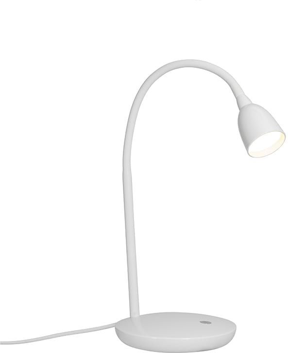 En praktiskt bordslampa med en modern design. Flexarm som gör det lätt att reglera ljusets riktning och knapp på lampfoten.