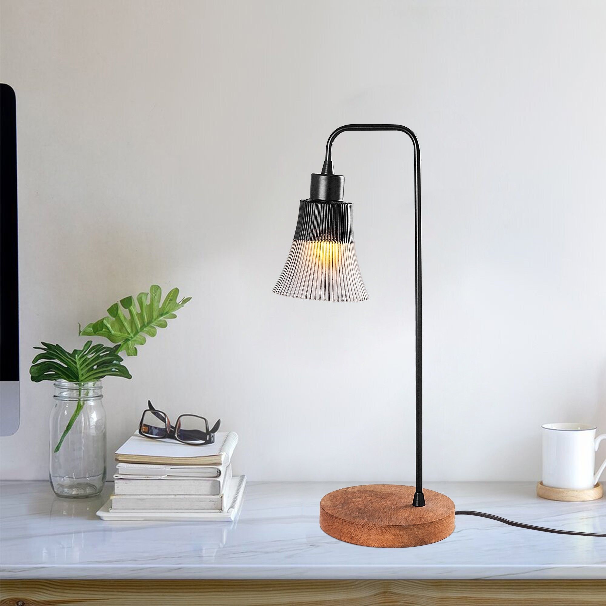 Bordslampa av trä, metall och glas. Ljuskälla ingår ej.