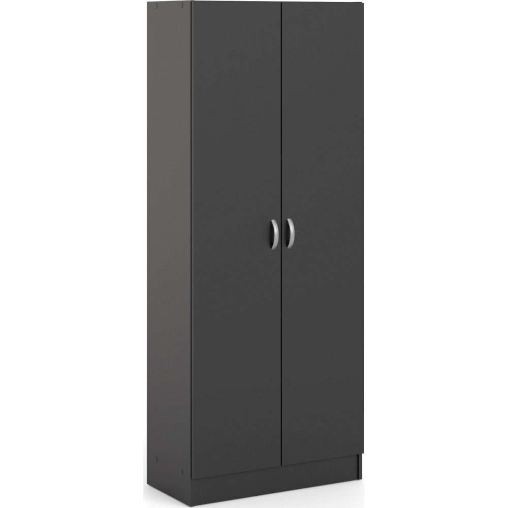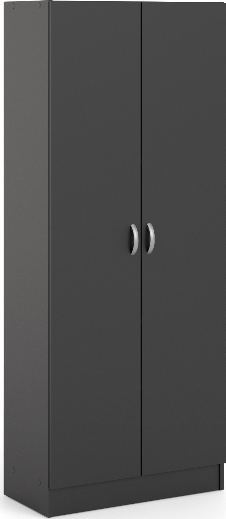 Garderob av trä med kantband av melamin. Ben och handtag av plast.