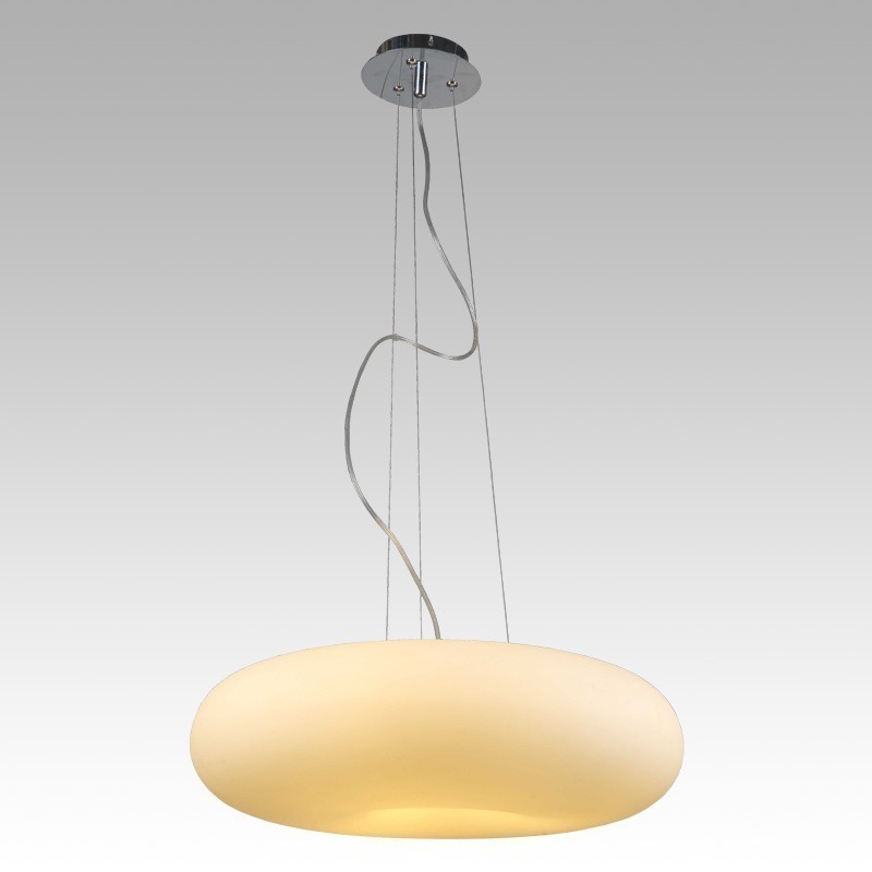 Pendellampa i galvaniserat stål. Blåst glas i opalfärg.