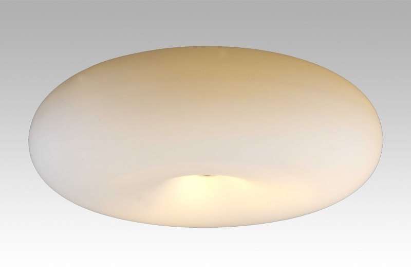 Plafond i galvaniserat stål. Blåst glas i opalfärg.