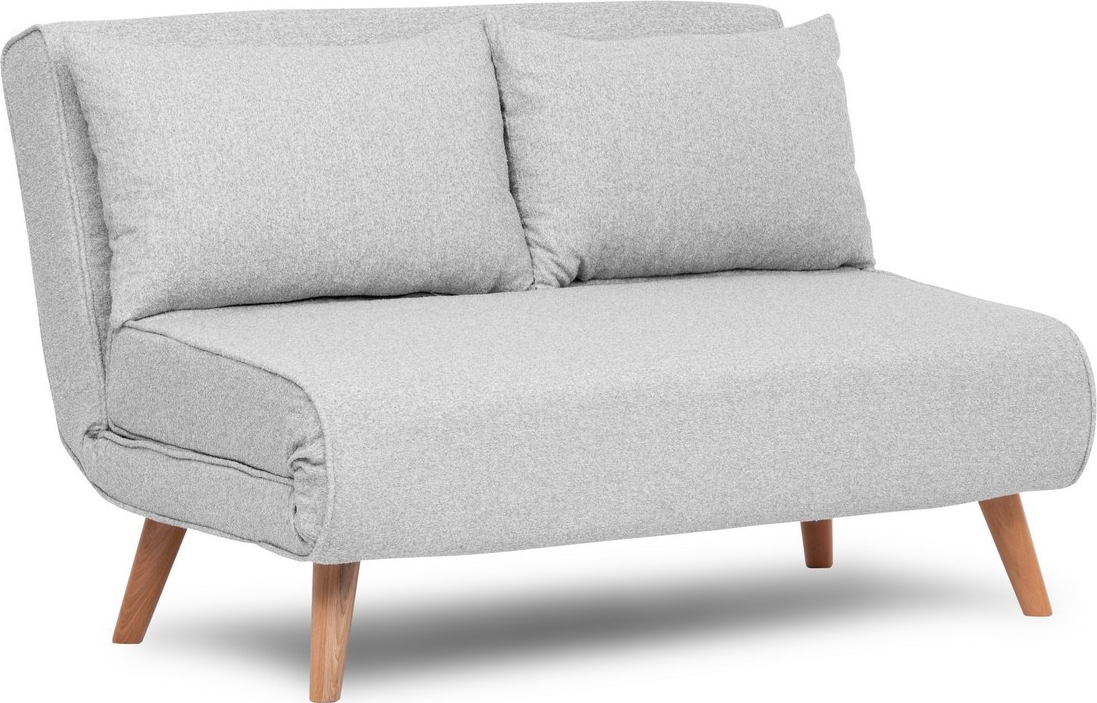 Soffa av metall med klädsel av teddytyg. 14 nivåers ställbart ryggstöd.