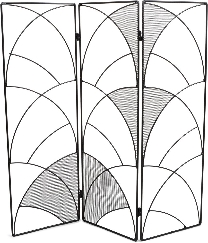 En snygg dekorativ skärmvägg i svart metall med ett konstnärligt utförande.