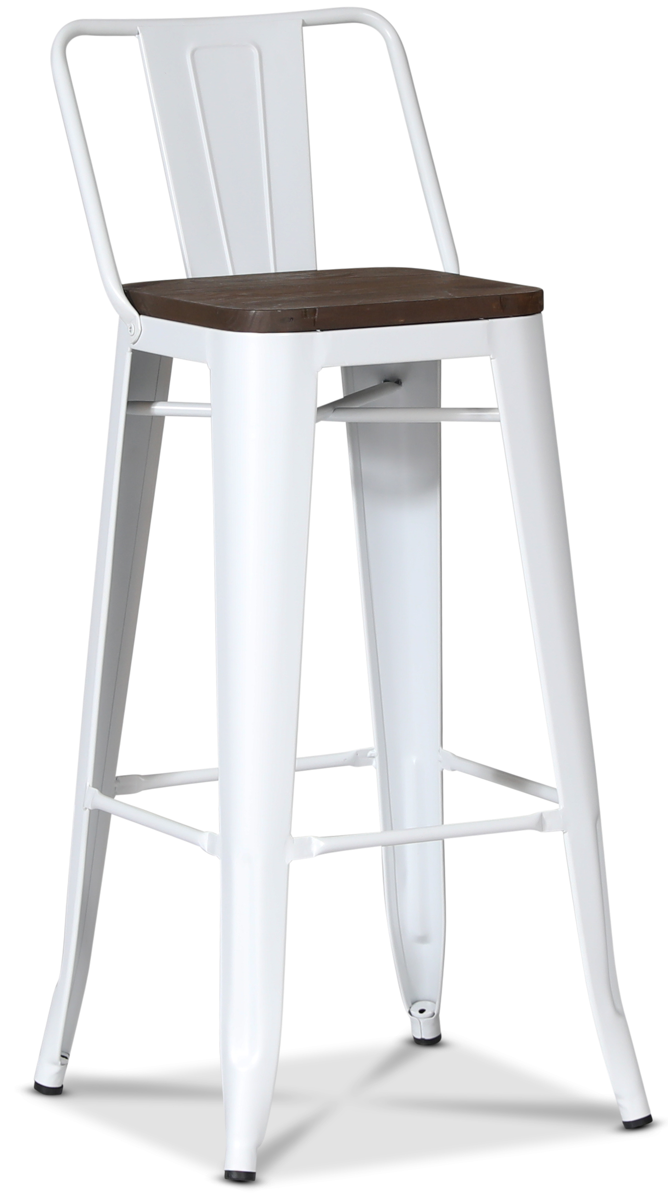 France vintage barstol i matt vit metall med sits i massivt brunt trä.