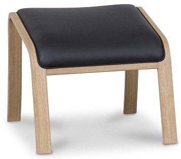 Frank fotpall är designad i Danmark av Nielsen design med känsla för det skandinaviska hemmet. Möbeln är klädd i svart äkta läder med välarbetade ben i oljad ek-fanèr.
