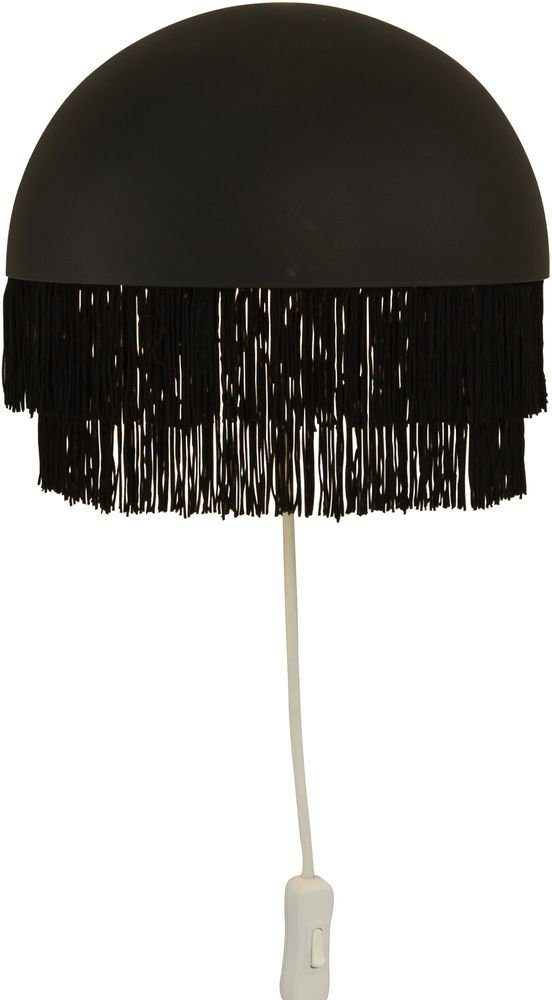 Vägglampa i svart utförande med svarta fransar. Monteras lätt på väggen. Strömbrytare på sladden.
