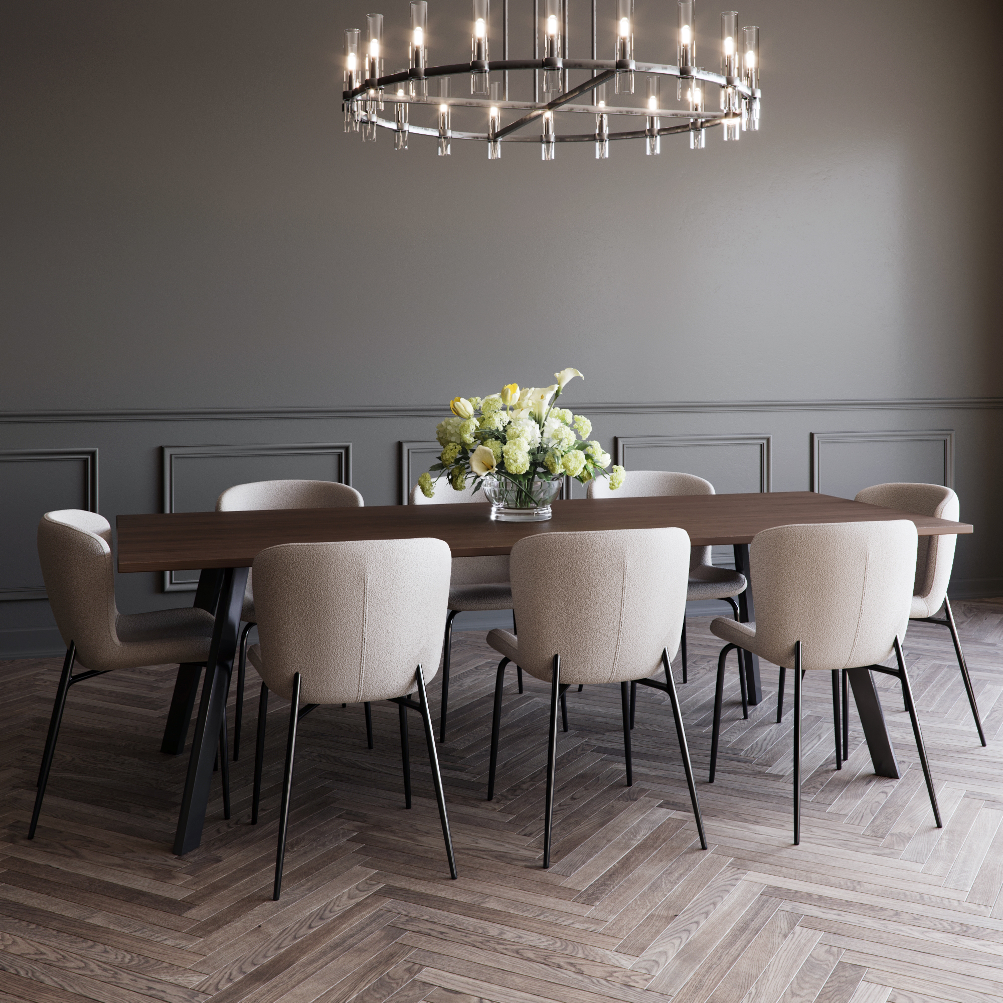 Freddy långt matbord för 10 personer i brunoljad ek med svarta metallben - 240x95 cm
