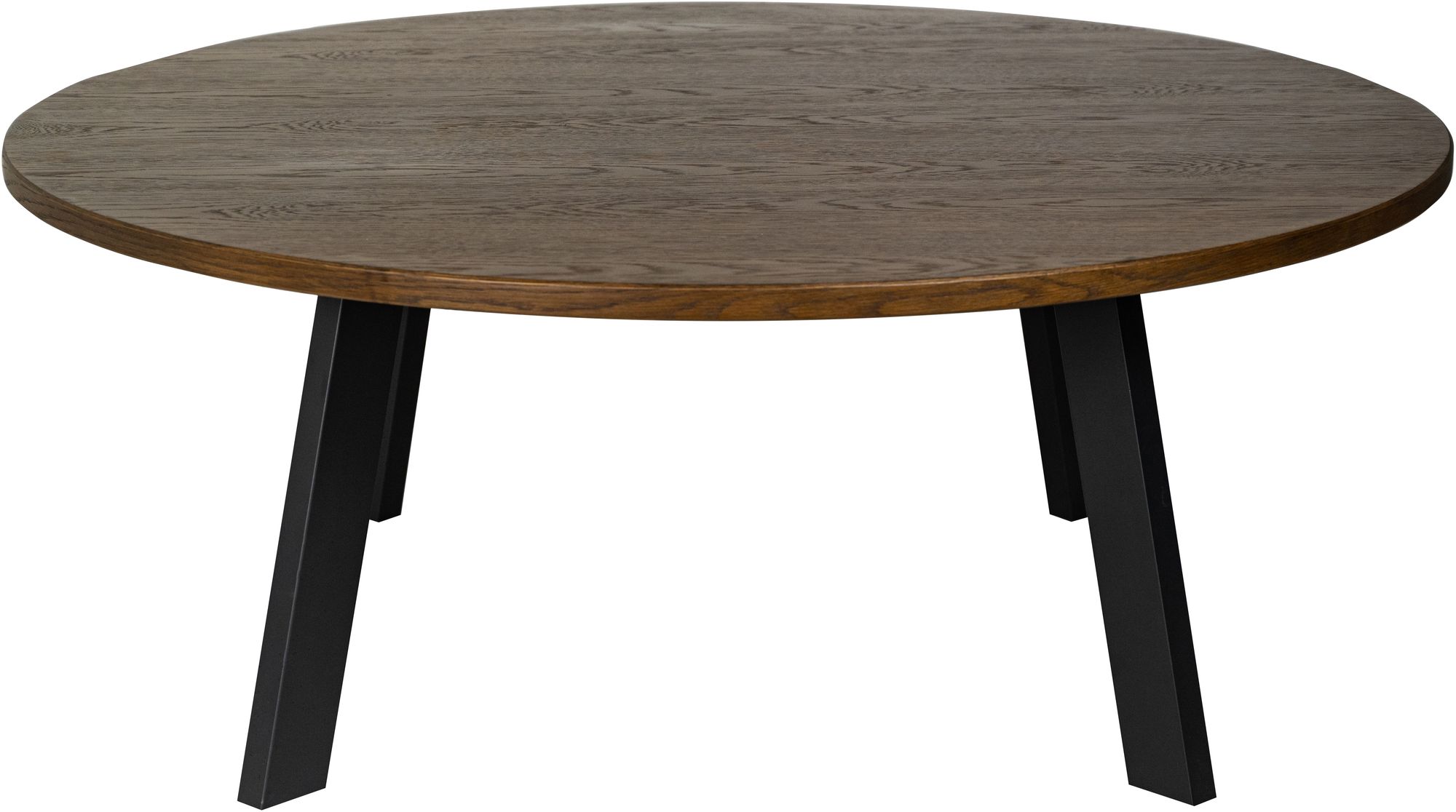 Freddy stort runt soffbord i brunoljad ek svarta metallben