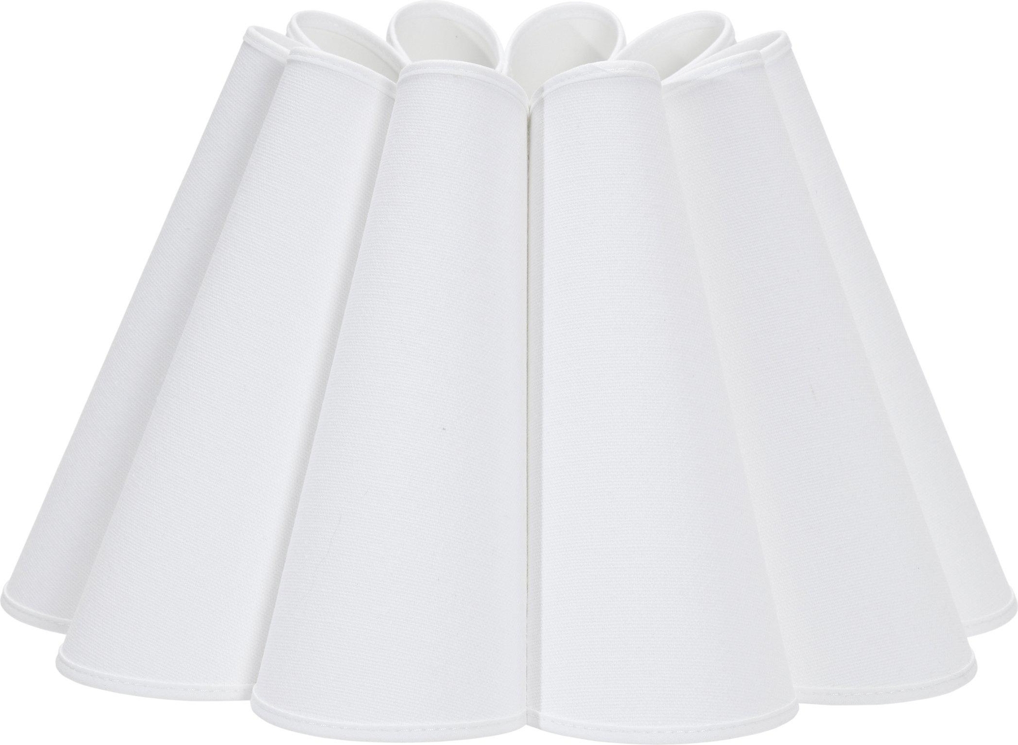 Lampskärm Freja med sin mjuka blomblads liknande form. Handsydd blad för blad med kantband i vitt slätt bomullstyg. Insida med vitt laminat som ger ett fint sken. Diameter nedtill 21cm, upptill 6cm och höjd 10,5cm. Använd en klotformad ljuskälla E27. Franza är ett bomullstyg som är certifierad enligt STANDARD 100 by OEKO-TEX®. Certifieringen garanterar att produkten är testad och fri från ämnen som kan vara skadliga för hälsan och miljön.