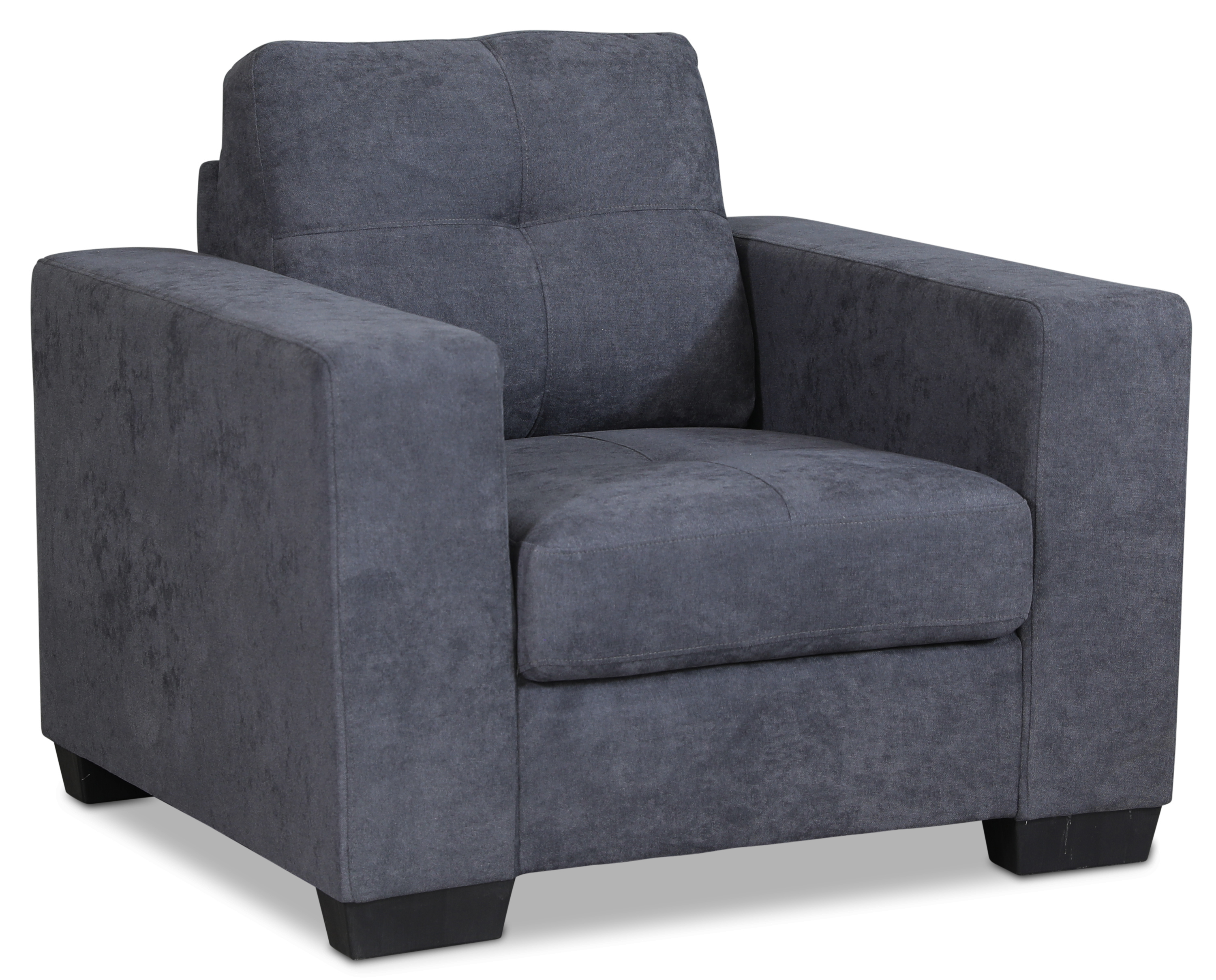 Robust fåtölj med stilrena linjer och breda armstöd. Fåtöljen är klädd i ett grått mjukt chenilletyg. Fixerad sittdyna som är uppbyggd med kallskum och fjädring för en god komfort. Svarta ben.