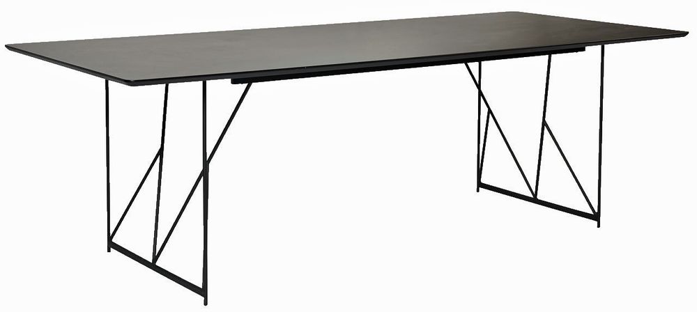 Stort och rymligt matbord i svart MDF med nätt underrede i pulverlackerat svart stål. Ett bord för de större sällskapen.