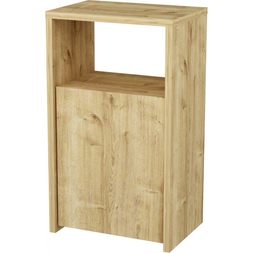 Sängbord av spånskiva.