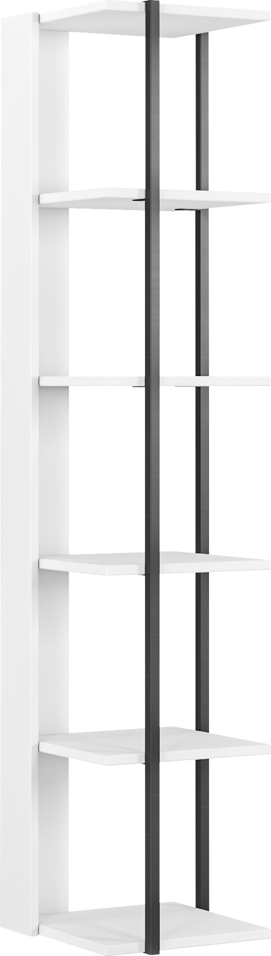 Bokhylla av melaminbelagd spånskiva och metall. Maxvikt: 15 kg/hylla.