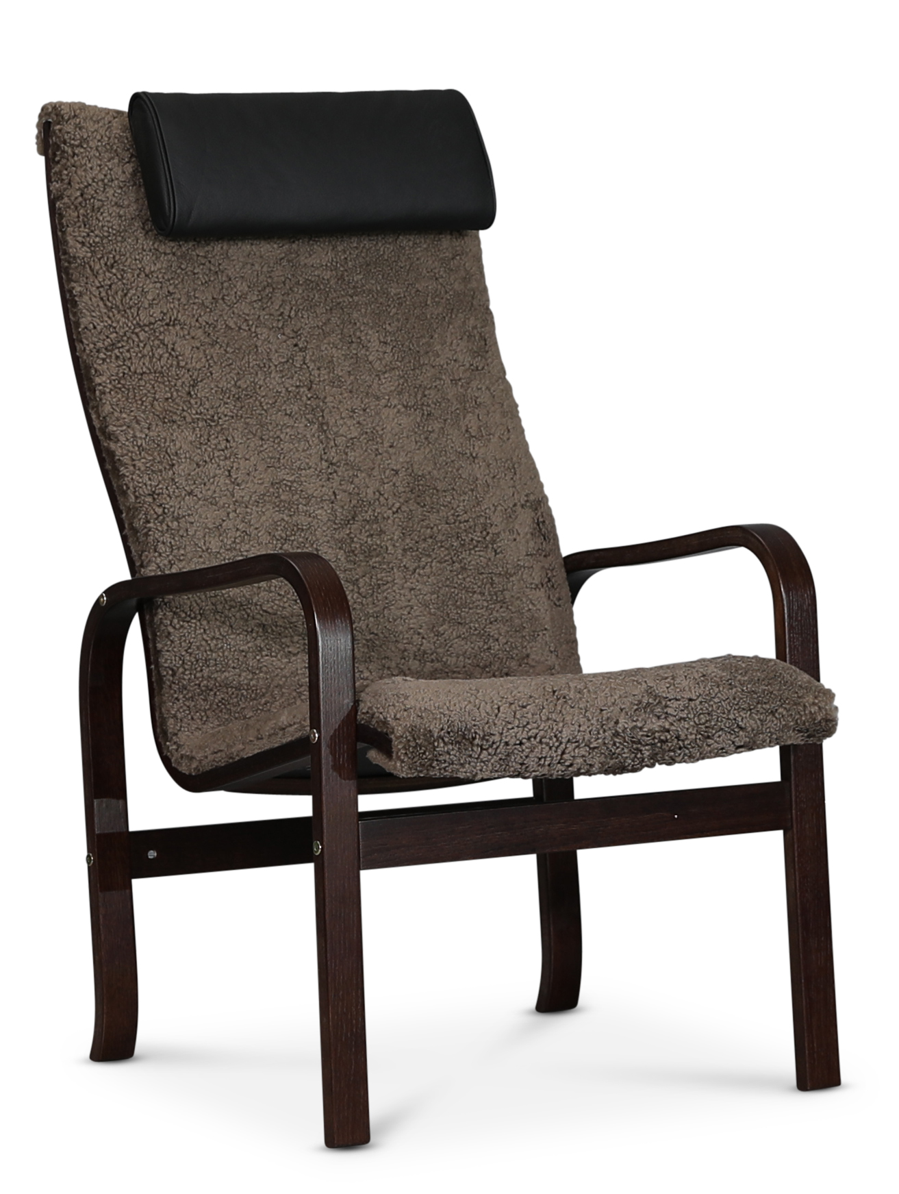 Fushion fåtölj i fårskinn scandinavian expresso - Mörk valnöt