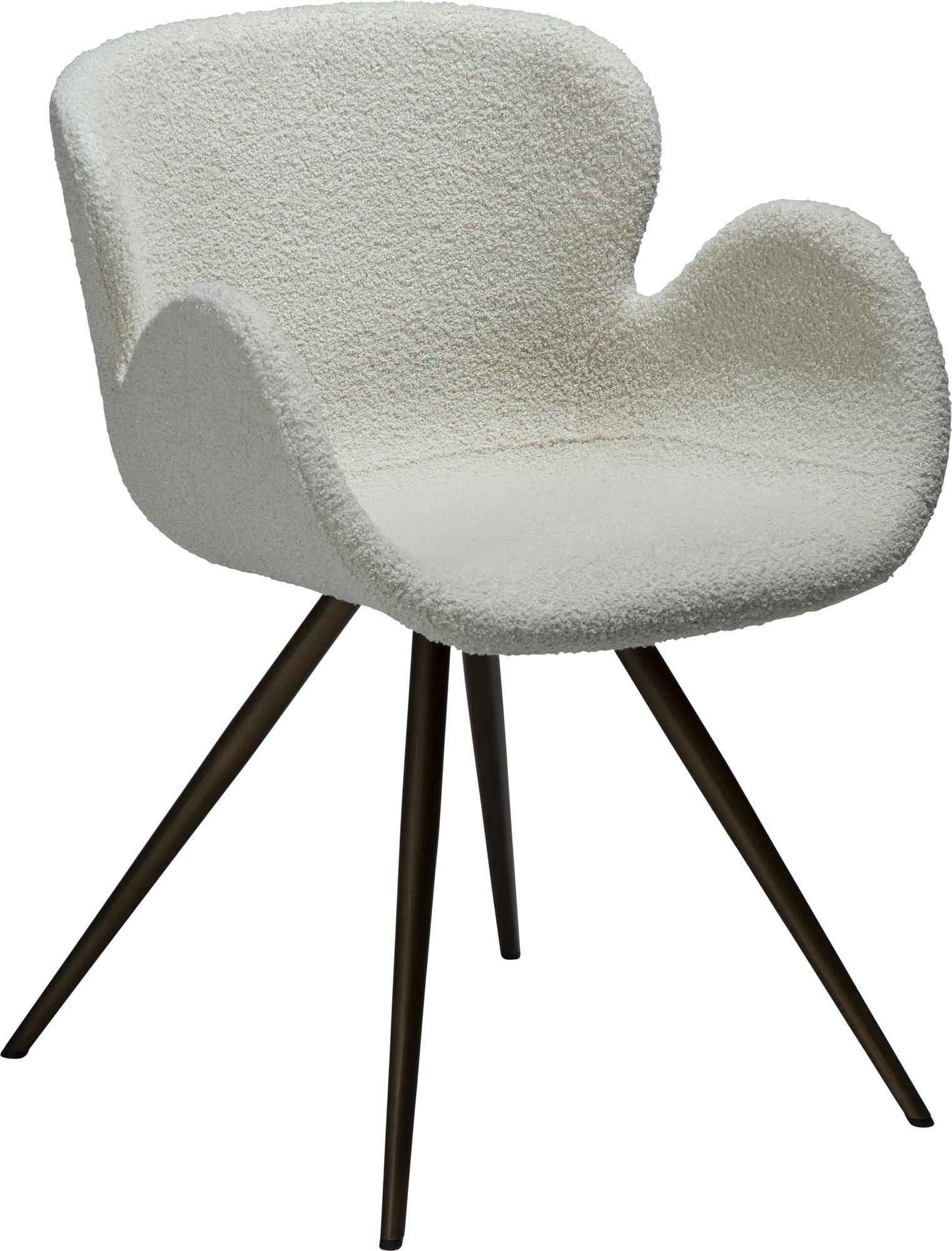 Elegant karmstol med maximal komfort. Passar in perfekt att ställa exempelvis bredvid bokhyllan för en bekväm läshörna i hemmet. Stolen är tillverkad i trä och klädd med ett härligt bouclétyg.