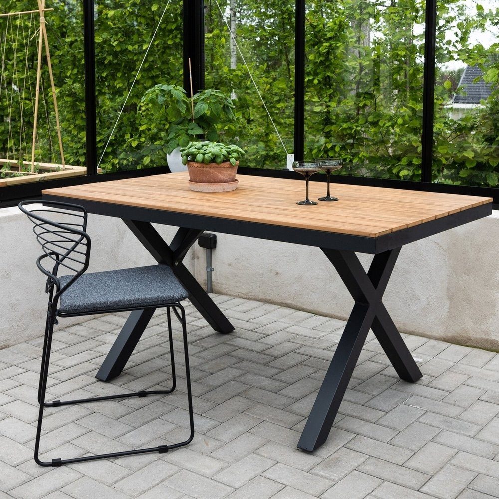 Matbord från serien Garcia i klassisk design med en rektangulär bordsskiva i dekorativ aintwood - lika tåligt som stilrent! Stommen är i svart aluminium som är lättviktigt och gör bordet enkelt att flytta omkring. Bordet lämpar sig utmärkt för utomhusbruk och passar därför lika bra i uterummet som i trädgården. Matcha med våra matstolar i samma serie för en komplett look och skapa ett iögonfallande blickfång på din uteplats. Här kan du samla nära och kära för strålande måltider i sommar!