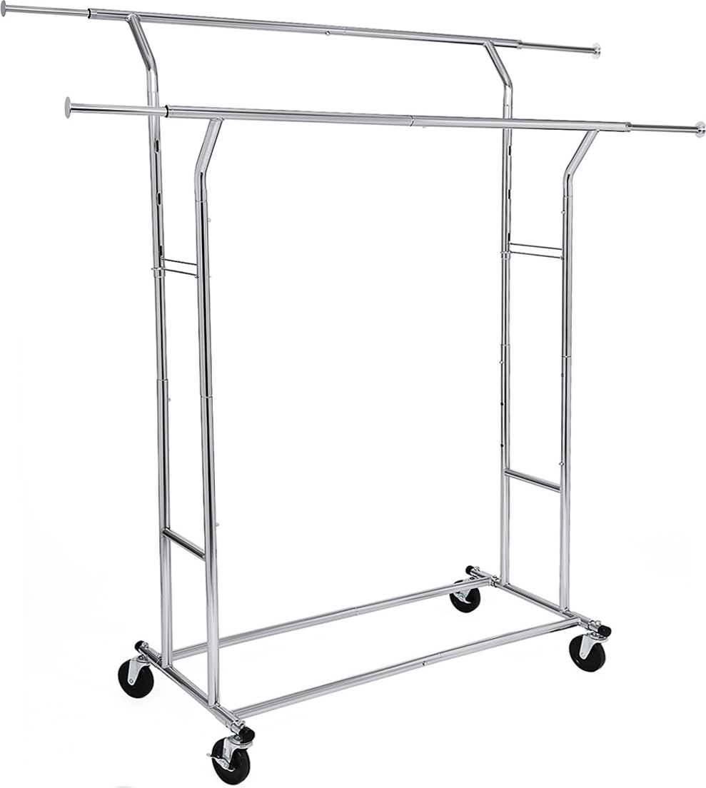Klädställning av stål. 2 av de 4 hjulen är låsbara. Justerbart i höjd och bredd.