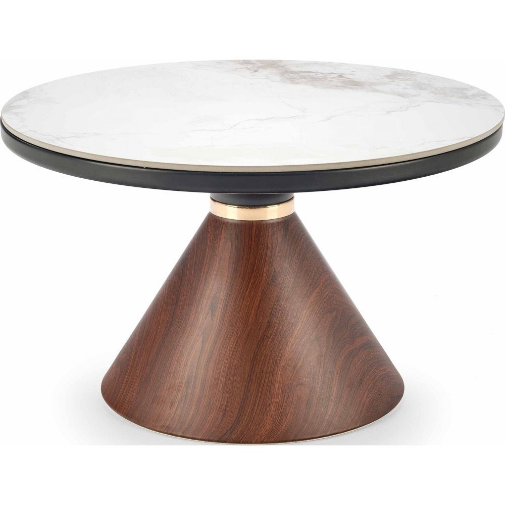 Genesis soffbord Ø70 cm - Vit marmor/valnöt