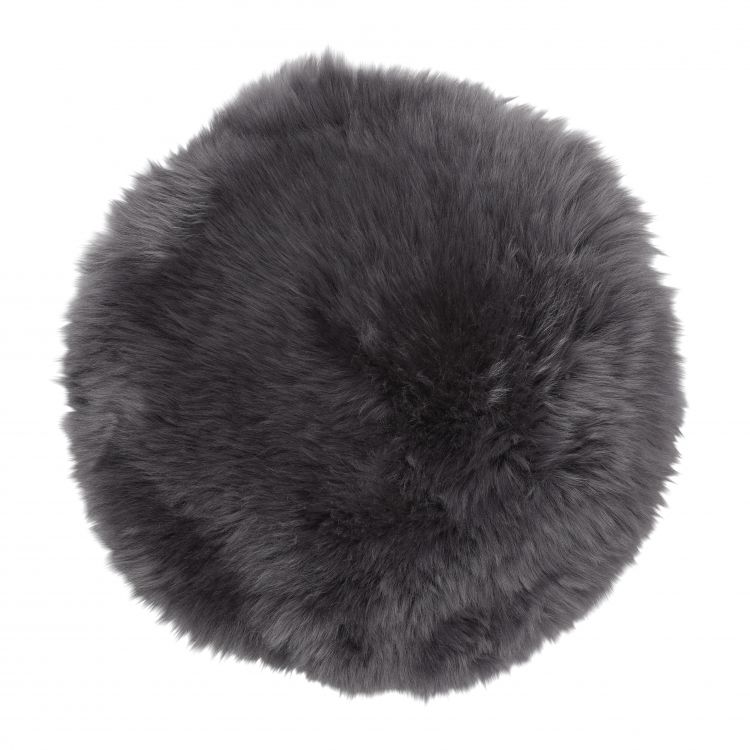 Gently rund stolsdyna Träkolsfärgat fårskinn
