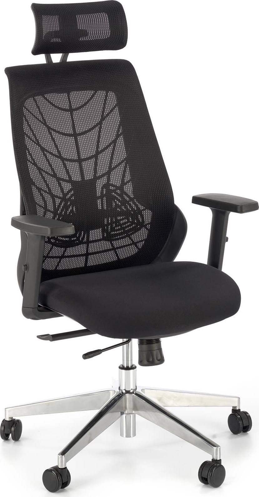 Kontorsstol med underrede av aluminium. Klädsel av mesh- och membrantyg.