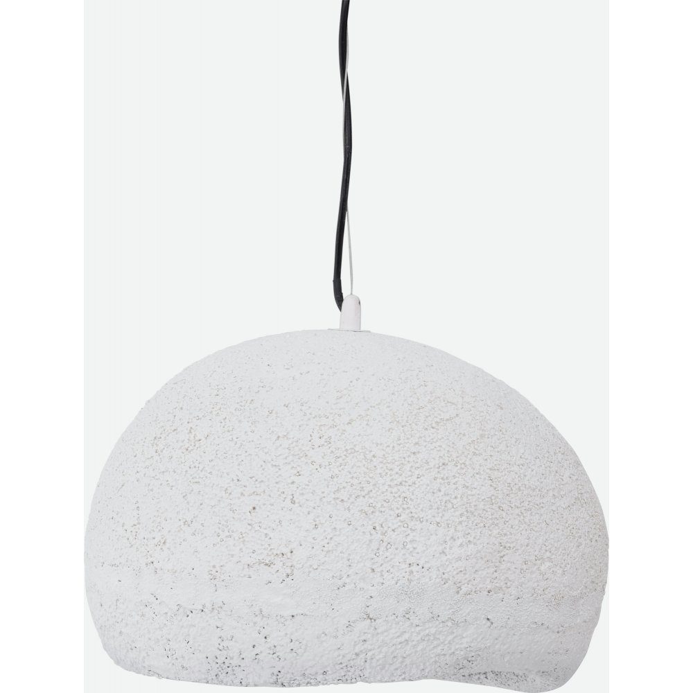 Unik taklampa med rundad form, gjord av vit resin som ger ett stenliknande utseende. Lampan ger ett behagligt ljus och passar därför perfekt i sovrummet eller över soffbordet. Med denna lampa får du både ett vackert sken och en trendig inredningsdetalj.