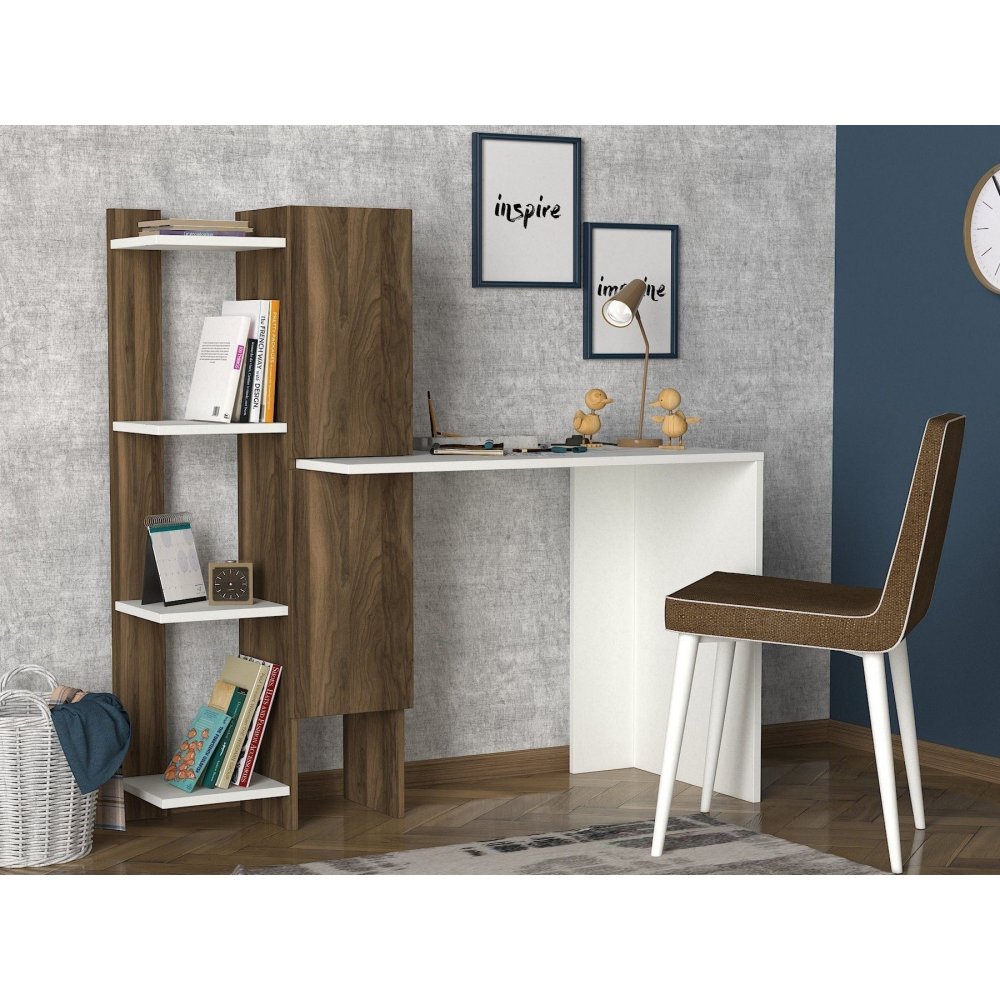Gina skrivbord 90x45 cm - Vit/valnöt