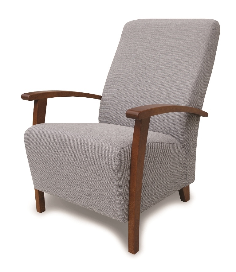 En trendig fåtölj med skumstoppad dyna. Stommen är tillverkad av björk och furu.