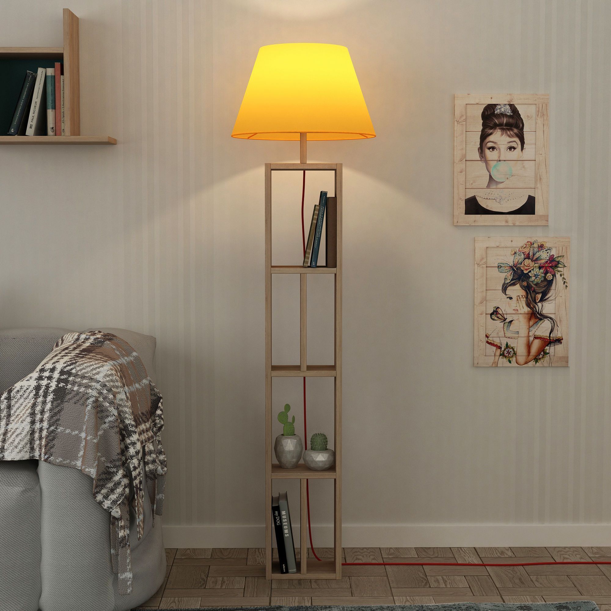 Golvlampa av trä och tyg. Ljuskälla ingår ej.