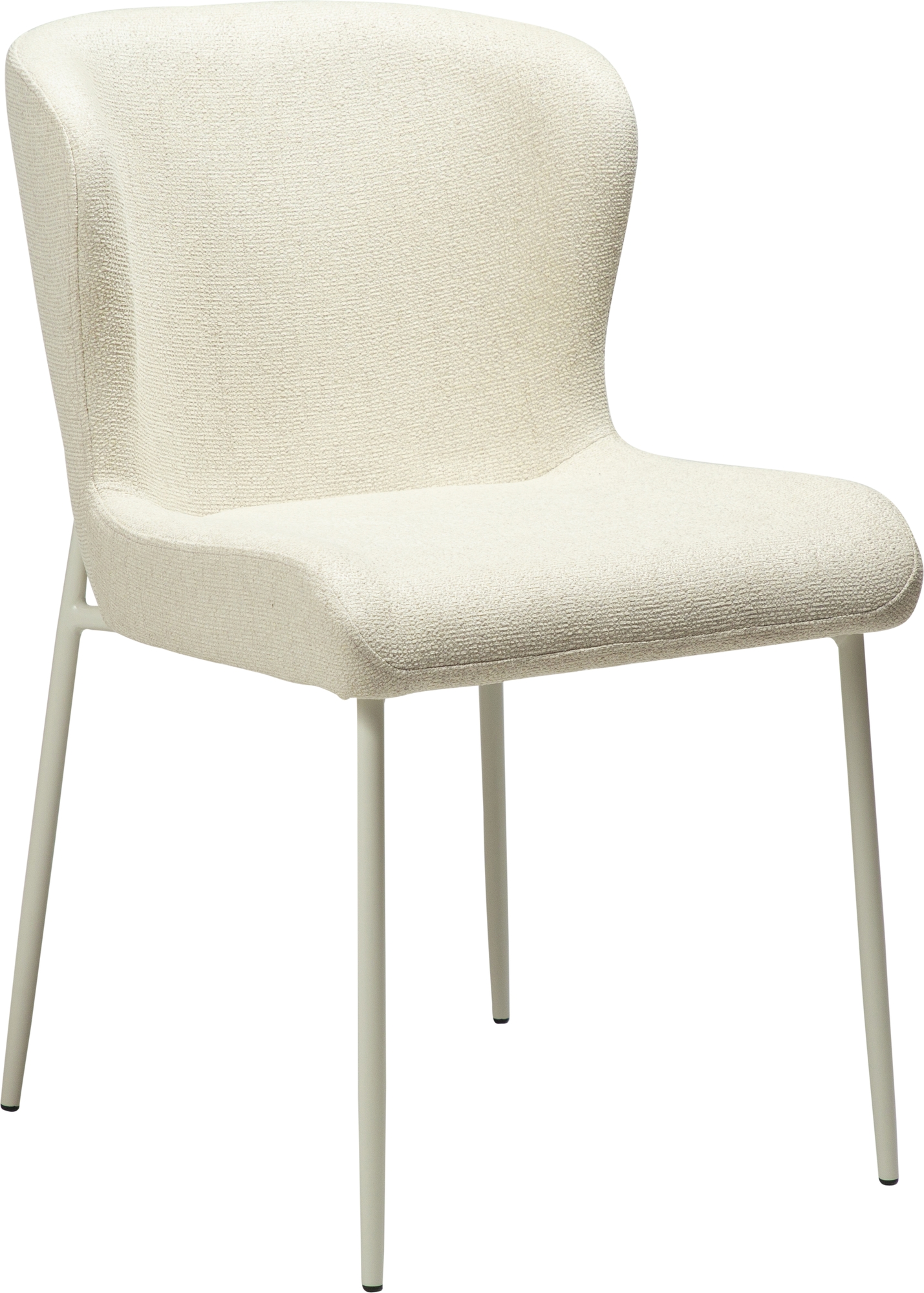 Stol som utstrålar elegans och har ett slitstarkt tyg som erbjuder en härlig sittkomfort. De smala, lätt konade benen i lackerad metall framhäver lyxkänslan hos stolen.