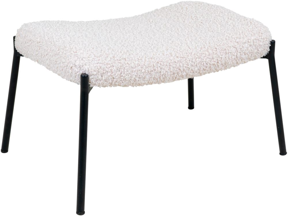 Fotpall i konstgjort fårskinn med svarta ben.