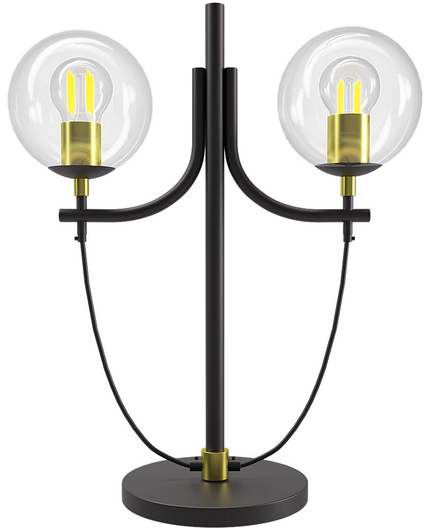 Glaslykta bordslampa i trendig retro design. Perfekt att ha på bordet eller i fönstret som en snygg inredningsdetalj. Svart metall med mässings detaljer och glasbollar.
