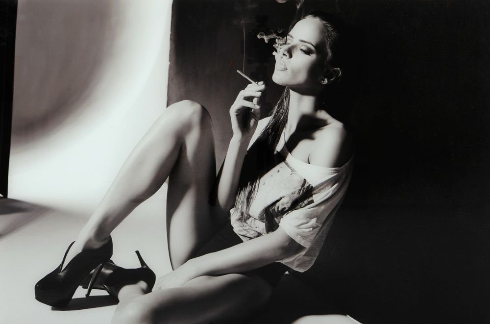 Glastavla - Woman with cigarette in b&w - 120x80 cm