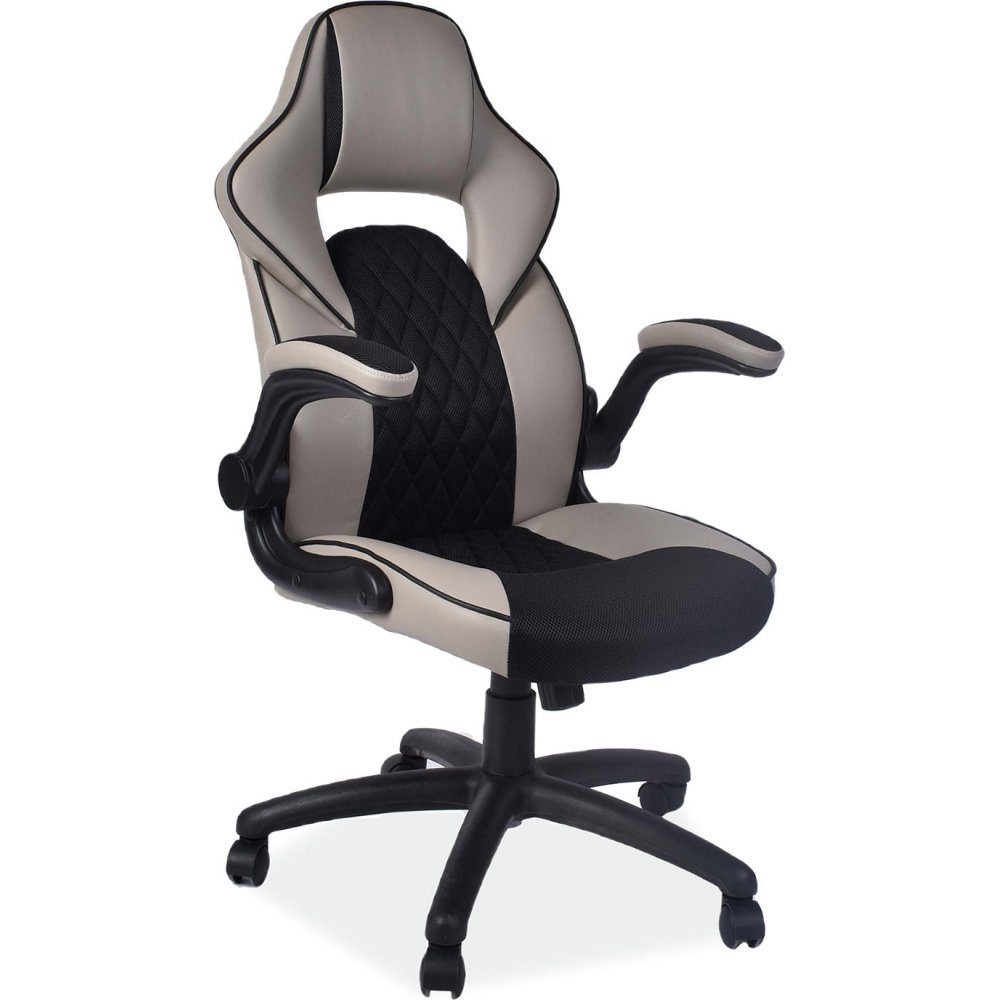 Kontorsstol av metall och plast. Klädd med konstläder.