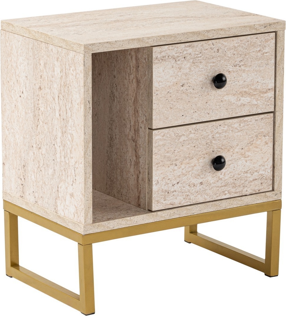 Glimmer sängbord - Travertin/guld