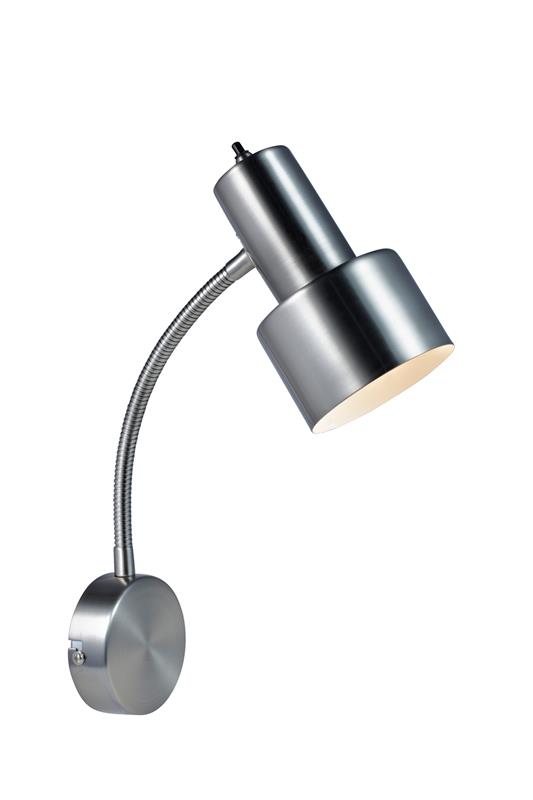 Glommen elegant designade vägglampa. Tillverkad i borstad stål med ställbart lamphuvud. Liten (E14) lamphållare. Strömbrytare på lamphuvudet. Max 40W glödljus eller motsvarande Lågenergi /Halogen /LED. Mycket lätt för att hitta den rätta platsen för lampan i hemmet.