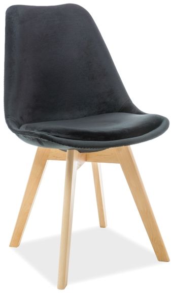 En härlig matstol med en stilren design. Stolen är tillverkad av ek och är klädd med ett mycket behagligt sammet tyg för maximal komfort.