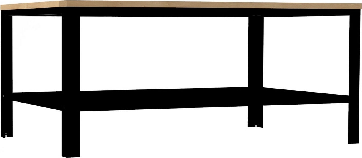 Soffbord av trä och metall.