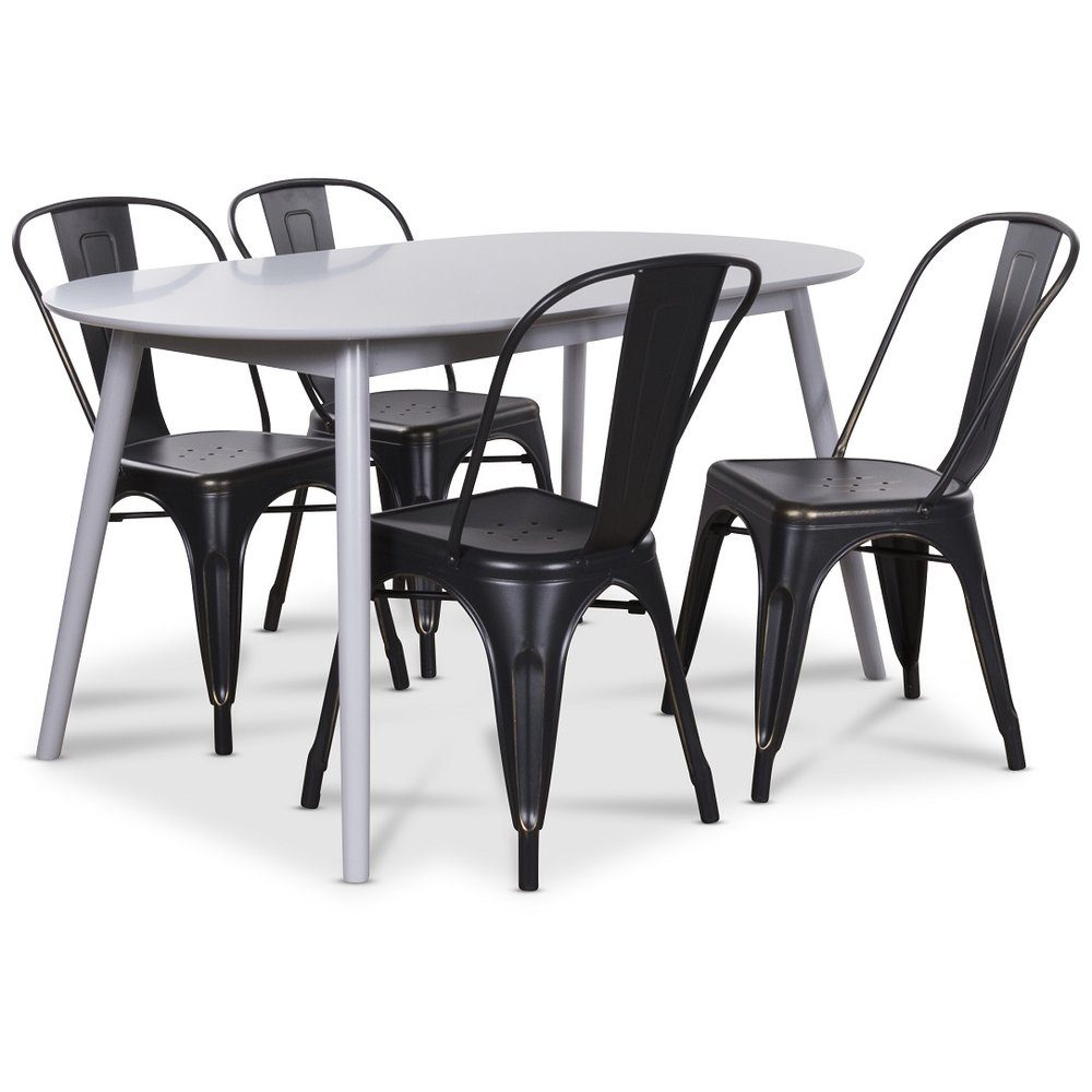 Göteborg matgrupp grått ovalt bord med 4 st Industry Plåtstolar - Grå / Svart Guld