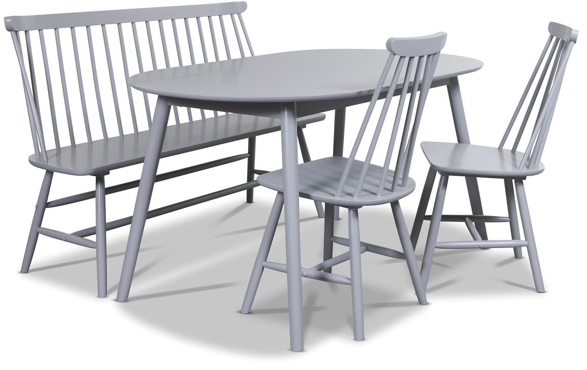 Göteborg Matgrupp - Ovalt Bord med 2 st grå pinnstolar och 1 st grå Pinnsoffa