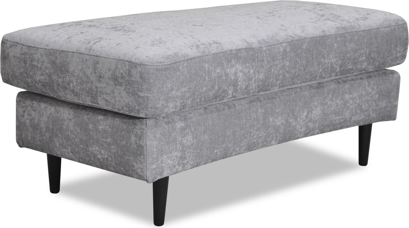 Gotland fotpall som är böjd för att matcha soffan Gotlands böjda form. Fotpallen är klädd i ett lyxigt grått oxford nr 17 tyg. Kan placeras överallt i hemmet som en extra sittplats. Passar perfekt till sofforna i serien Gotland.