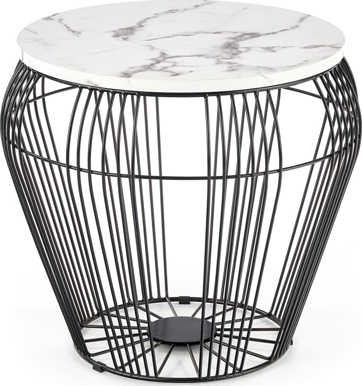 Grande soffbord Ø56 cm - Vit marmor/svart