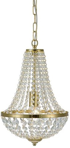Kristallkrona Gränsö med dess eleganta design. Stommen är tillverkad i mässingsfärgad metall med vackra maskinslipade prismor. 1,5 meter kedja med takkopp för krokupphäng. Jordad anslutning. Stor lamphållare (E27). Max 60W glödlampa eller motsvarande styrka i halogen, lågenergi eller LED. Lampan monteras lätt på plats och passar perfekt in i flera olika miljöer.