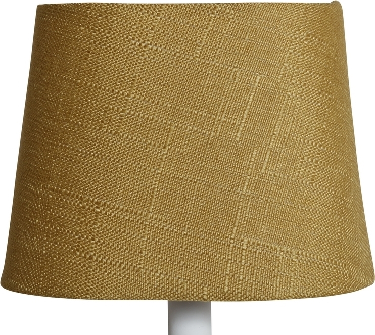 Lampskärm av grovlinneliknande polyestertyg. Vit insida av hårdplast. Medföljande distansbricka gör det möjligt att använda lampskärmen till både E14- och E27-glödlampor. Glödlampa och lampfot ingår ej.
