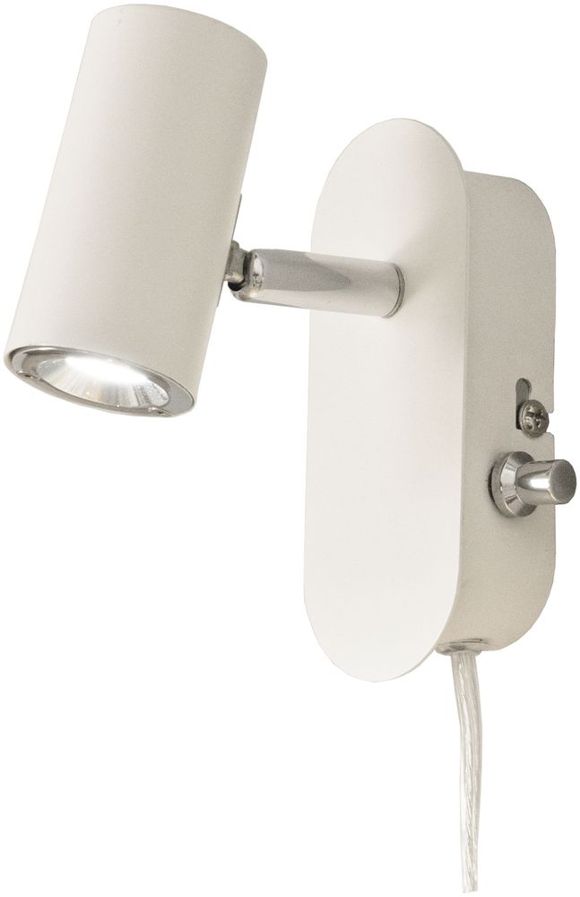 Vägglampa i vitt och krom utförande. Monteras lätt fast på väggen.