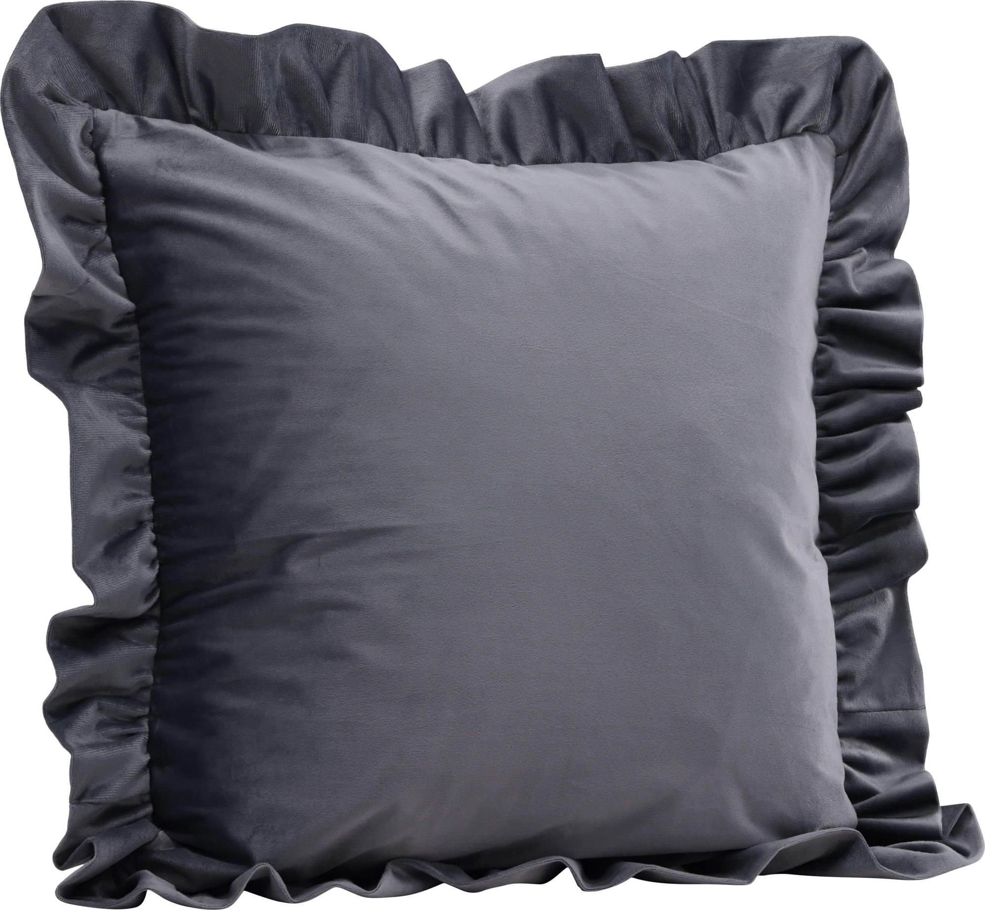 Kuddfodral med en dekorativ design och elegant utstrålning med sitt lystriga sammetstyg. Kuddfodralet ramas in av en dekorativ volangkant och har en dold dragkedja på baksidan. Här kommer det i en askig mörkgrå nyans som enkelt skapar ett lyxigt blickfång i soffan eller sängen.