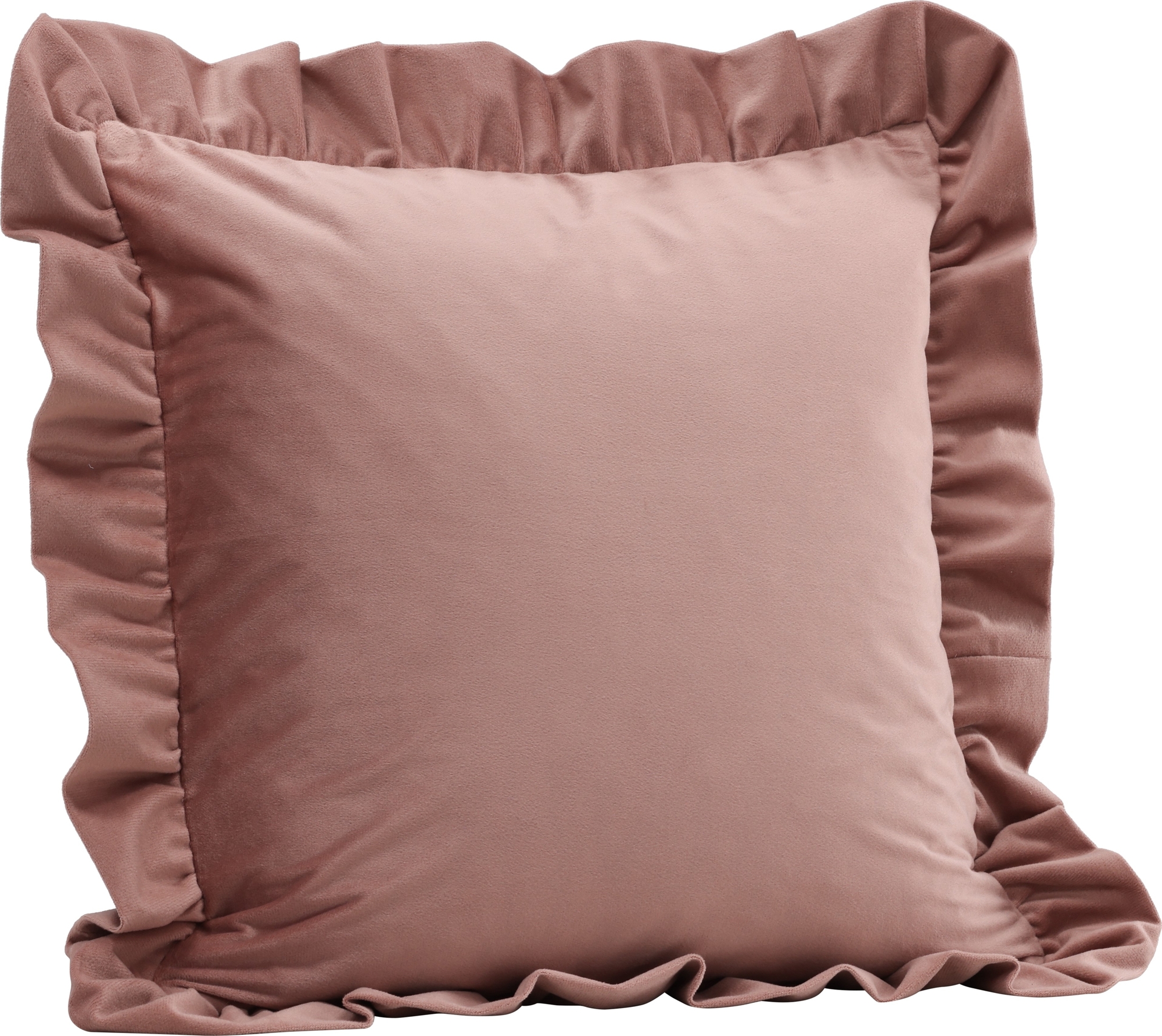 Kuddfodral som kombinerar stil, nostalgi och moderna former. Fodralet ramas in av en dekorativ volangkant och har en dold dragkedja på baksidan. Här kommer det i en gammeldags rosa nyans som enkelt skapar ett lyxigt blickfång i soffan eller sängen.