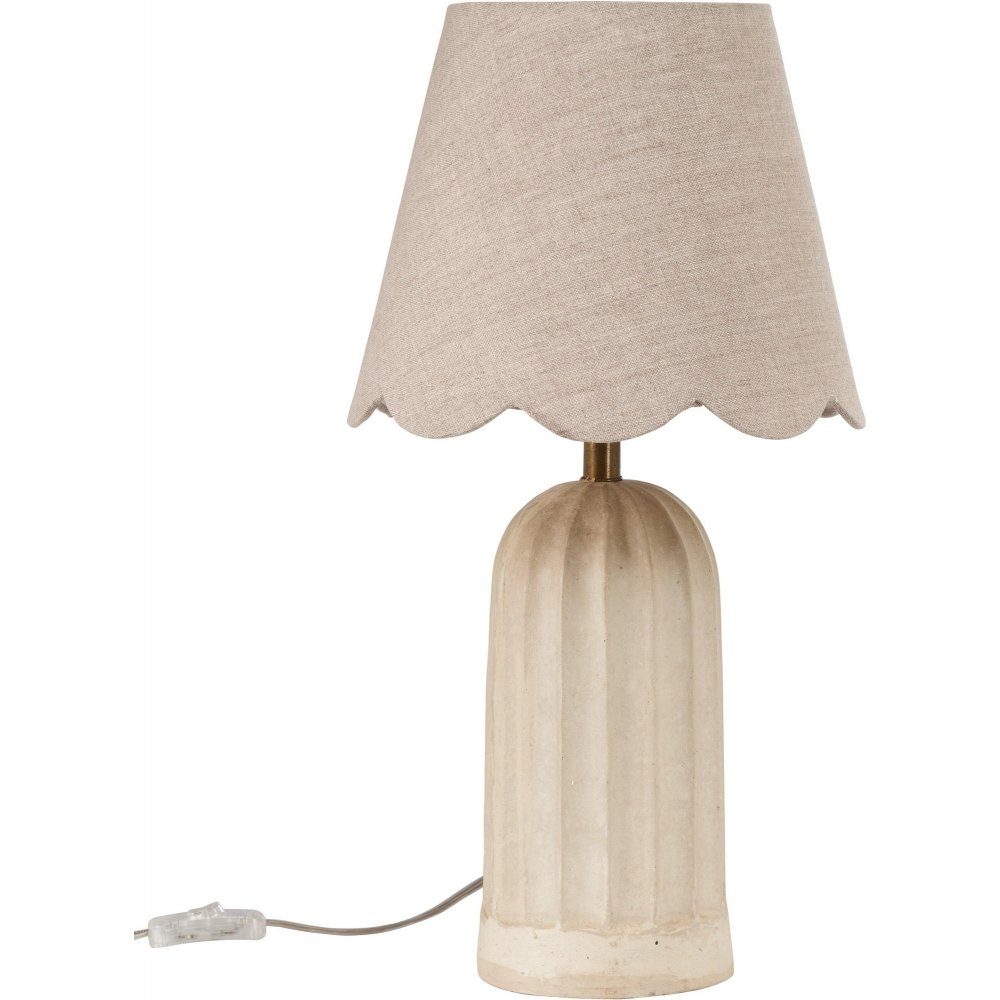 En vacker bordslampa i lugna och jordnära toner som bidrar med en touch av tidlöshet till hemmet. Lampfoten har en klassisk form med breda räfflor och är tillverkad av ett återvunnet, keramikliknande material - ekomix. Lampskärmen är i linnetyg med fin struktur, lätt utställd och har en vågig form nedtill.